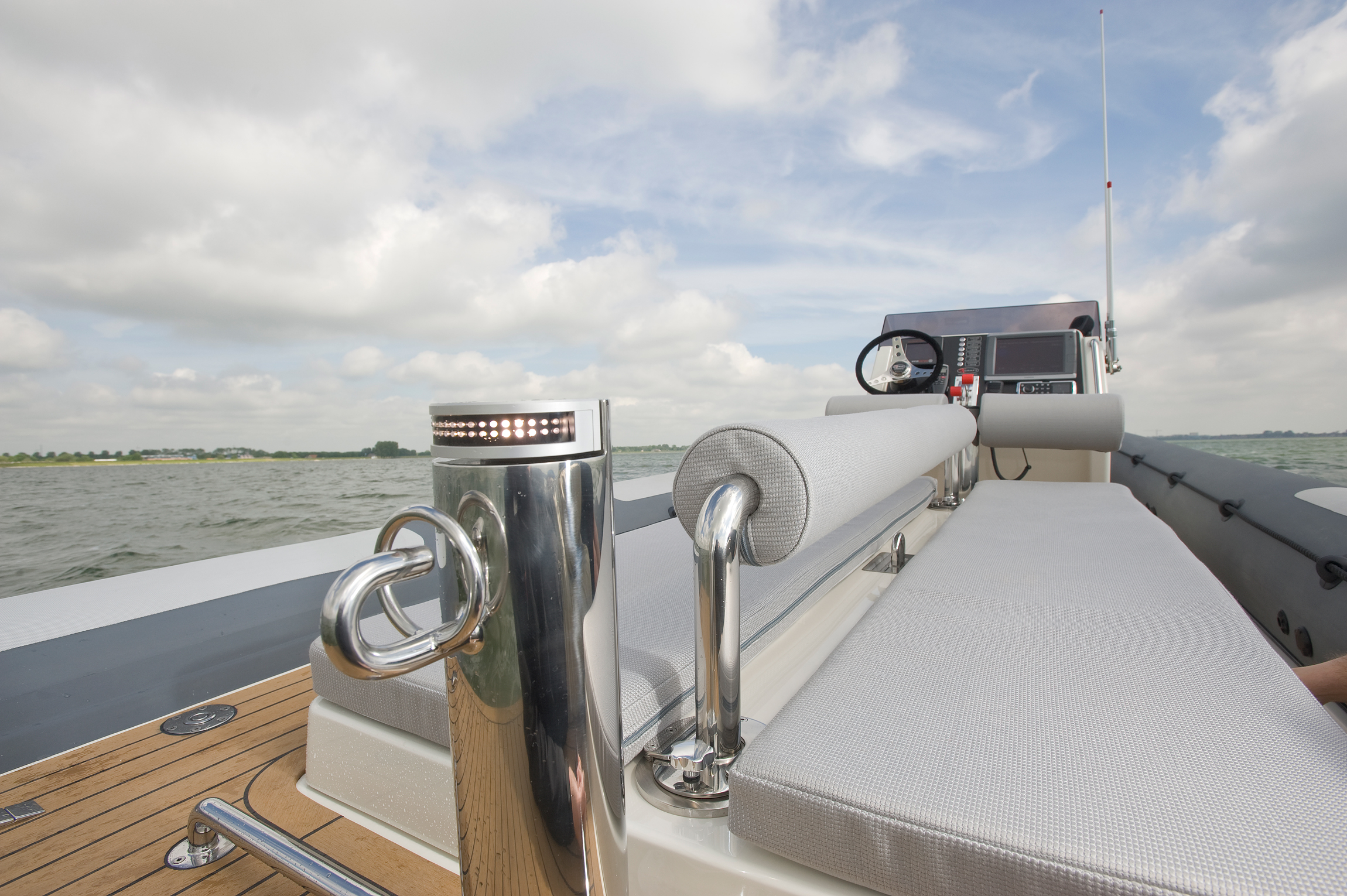 X-Craft combines speed with comfort. The especially designed deep-V hulls guarantee absolute performance and neutralize the rugged blows of the waves. Thanks to these hulls and the shock absorbing seats designed by X-Craft, every trip is superbly comfortable even with choppy waters and at top speed. The seats moreover ensure you maintain an ergonomically correct posture and are upholstered in either textile or leather. The RIB can even be furnished with a large sun deck on which a large company can enjoy some quality relaxation.